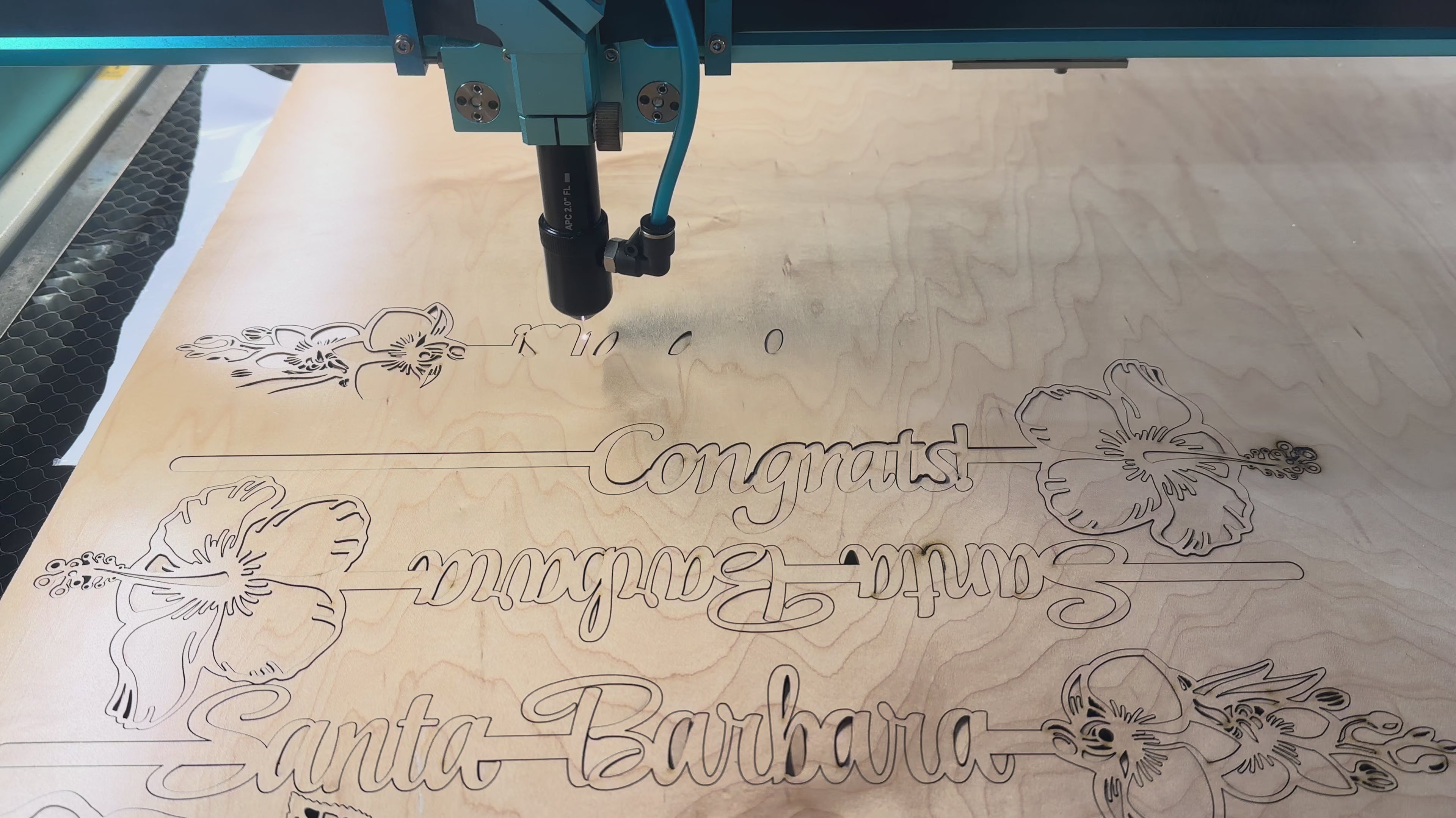 We build all of our products from scratch here in Santa Barbara. Our laser equipment supports 36" x 51" wood, acrylic, leather, slate, and many other materials. Our UV Printing equipment can support 13"x16"